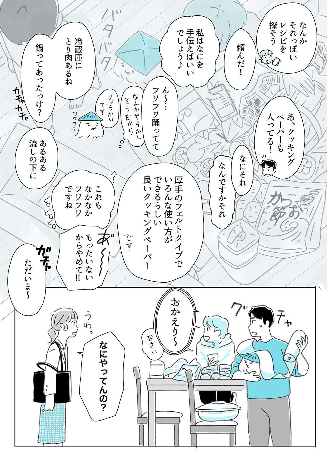 誰かと一緒に作るお料理はとっても楽しい共同作業ですが、自分とは違う手順や処理のしかたを見るとつい口を出したくなってしまうことも。けれど「いつもと違うやり方」にも、また新しいおいしさが詰まっているはず。