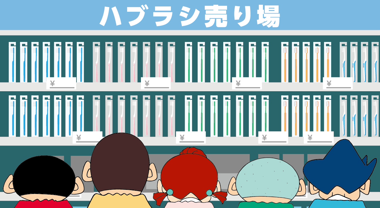 今回は、ふたば幼稚園の先生とカスカベ防衛隊が自分にあったハブラシ選びについて学ぶべく、歯科衛生士(※)の松浦さんと一緒にドラッグストアへ!楽しく笑って学べるストーリーのなかで、歯科衛生士の視点からハブラシ選びのコツを5つのポイントに分けてご紹介します。