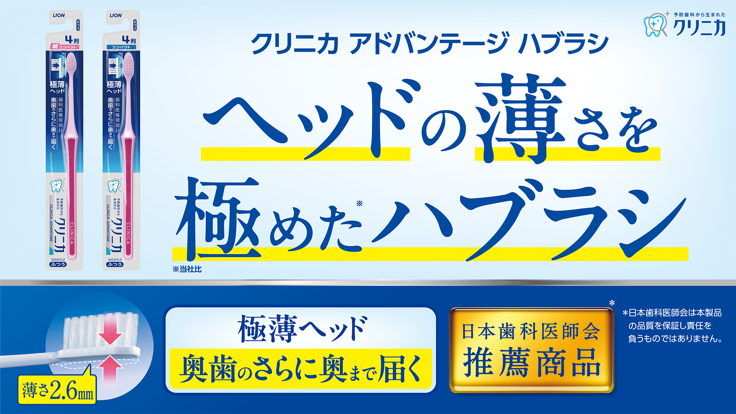 クリニカアドバンテージ ハブラシは、ヘッドが薄いから、