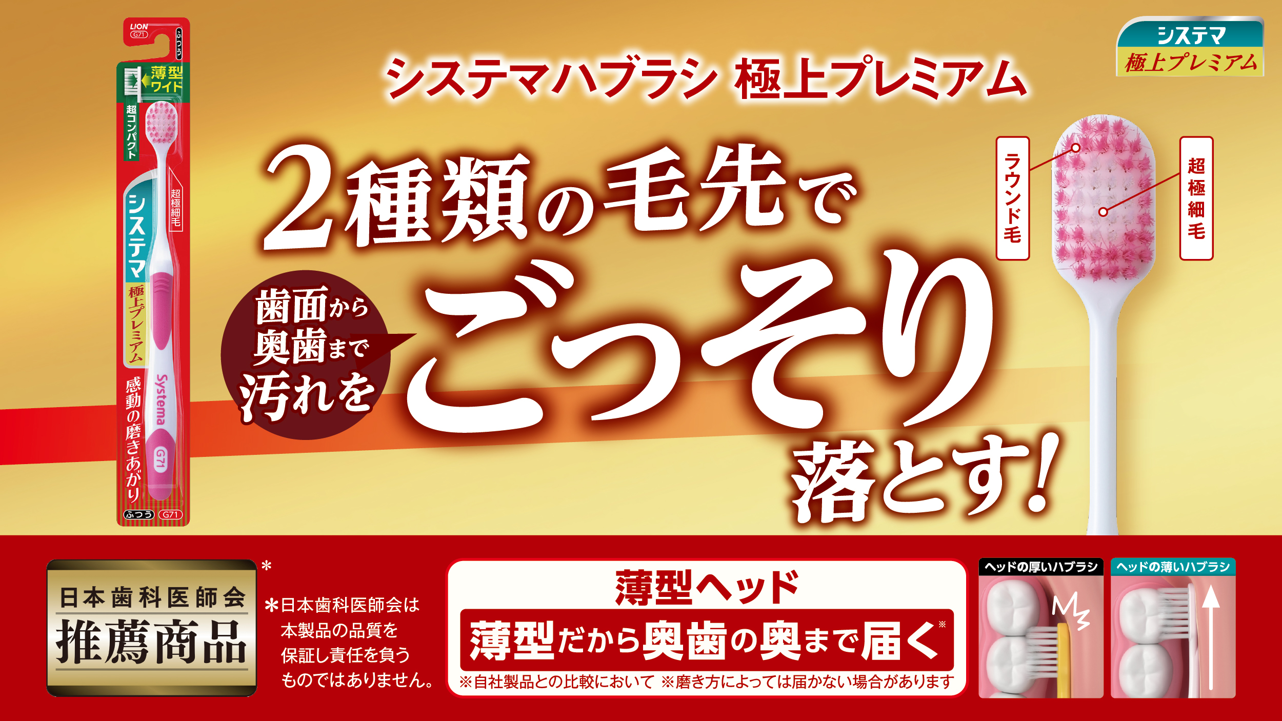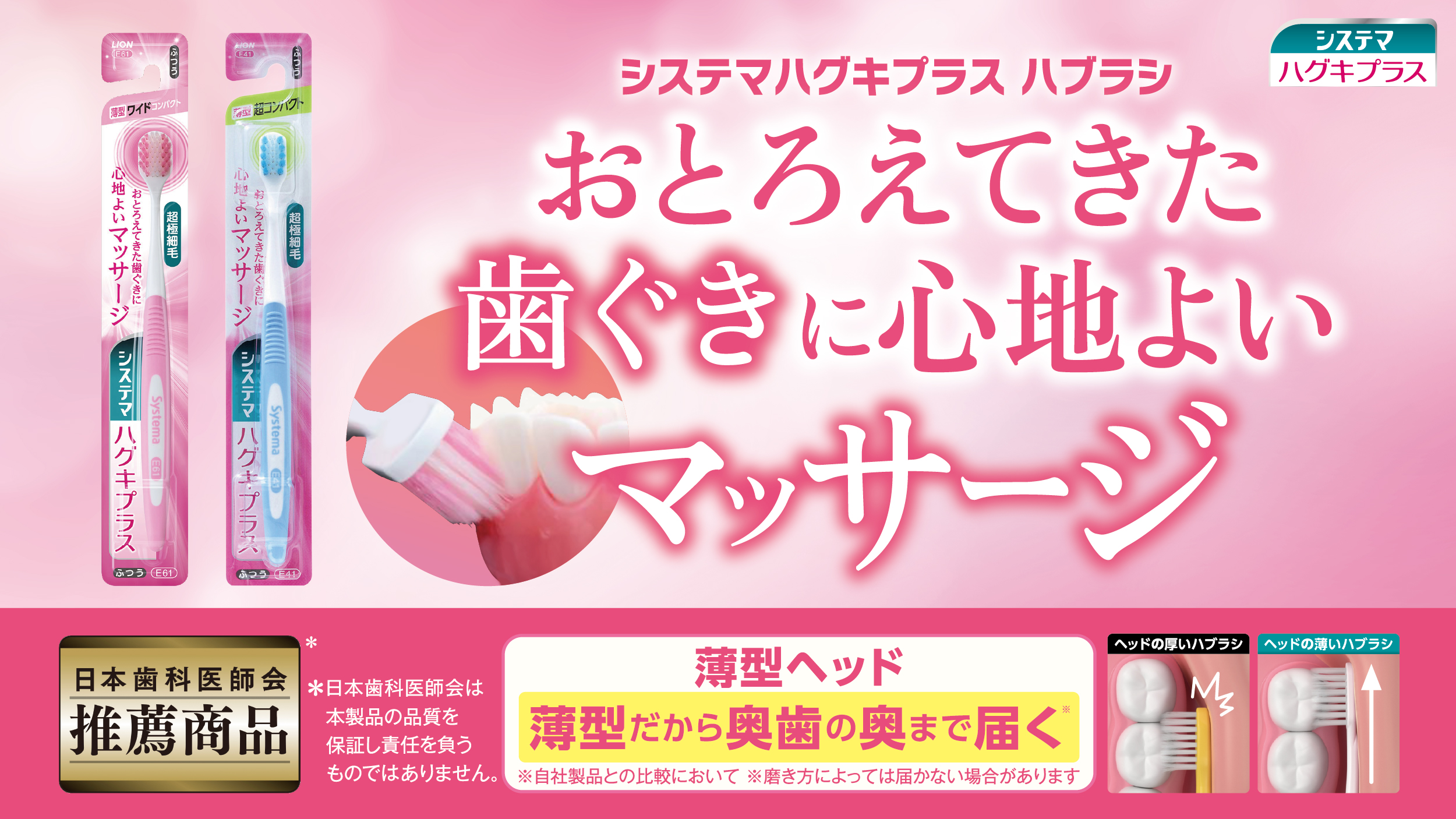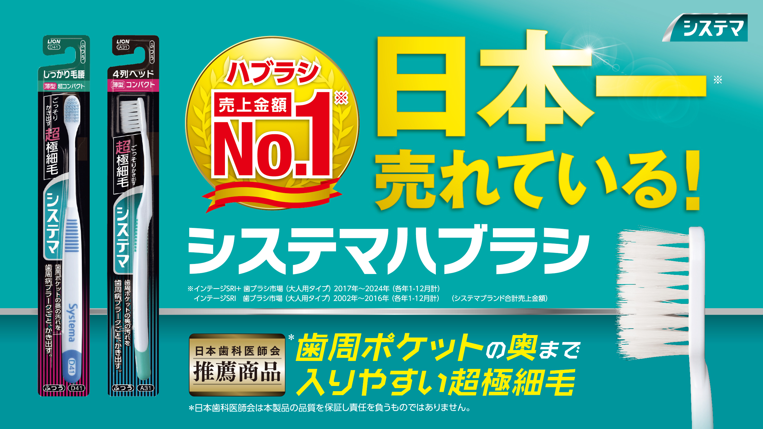 日本一(※)売れているシステマハブラシもオススメです。超極細毛だから歯周ポケットの奥まで入りやすいハブラシです。