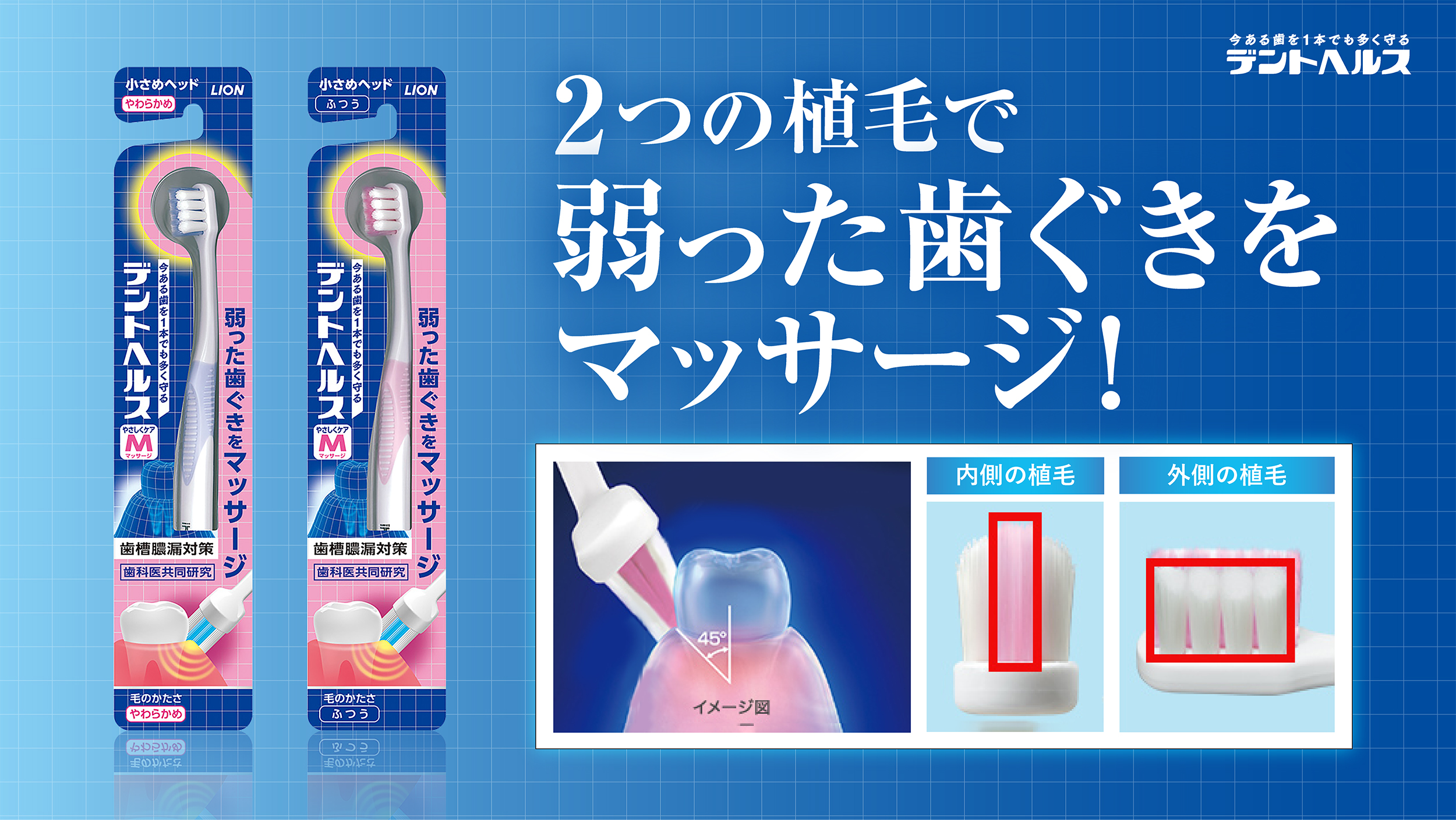 デントヘルス ハブラシは弱った歯ぐきをいたわりながら、しっかりとマッサージできる設計です
