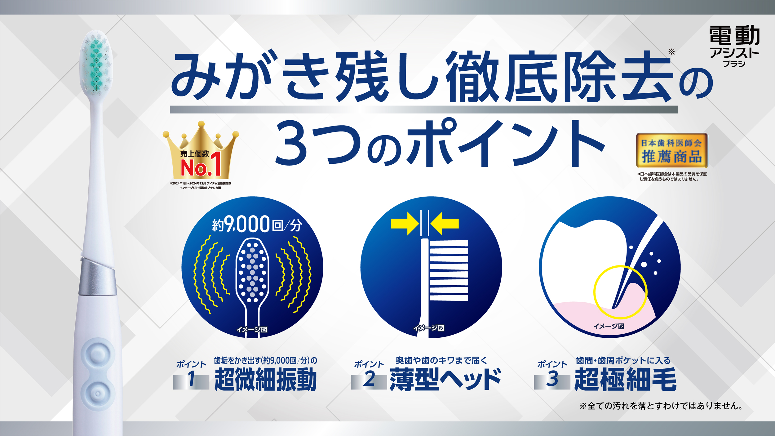 あっ、ライオン電動アシストブラシはどうでしょうか?音波振動(約9,000回/分)が歯垢の除去をアシストしてくれますよ。