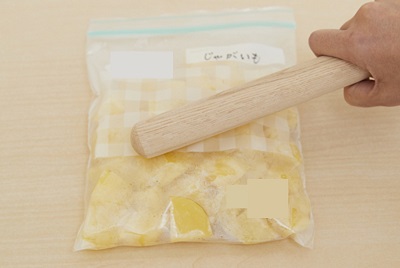 2. ジッパー付き保存バッグに入れてつぶしてから、冷凍保存