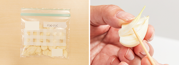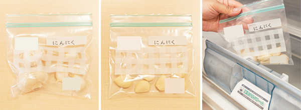 ・使いかけのにんにくのニオイが他の食材に移らないように、ジッパー付き保存バッグに入れ、特定低温室で保存する。