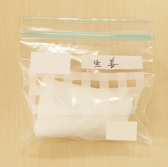 いろいろな方法で2週間試した中で保存状態がよかったのは、生姜を乾いた厚手のクッキングペーパーで包み、ジッパー付き保存バッグに入れて密閉し、野菜室で保存したものでした。