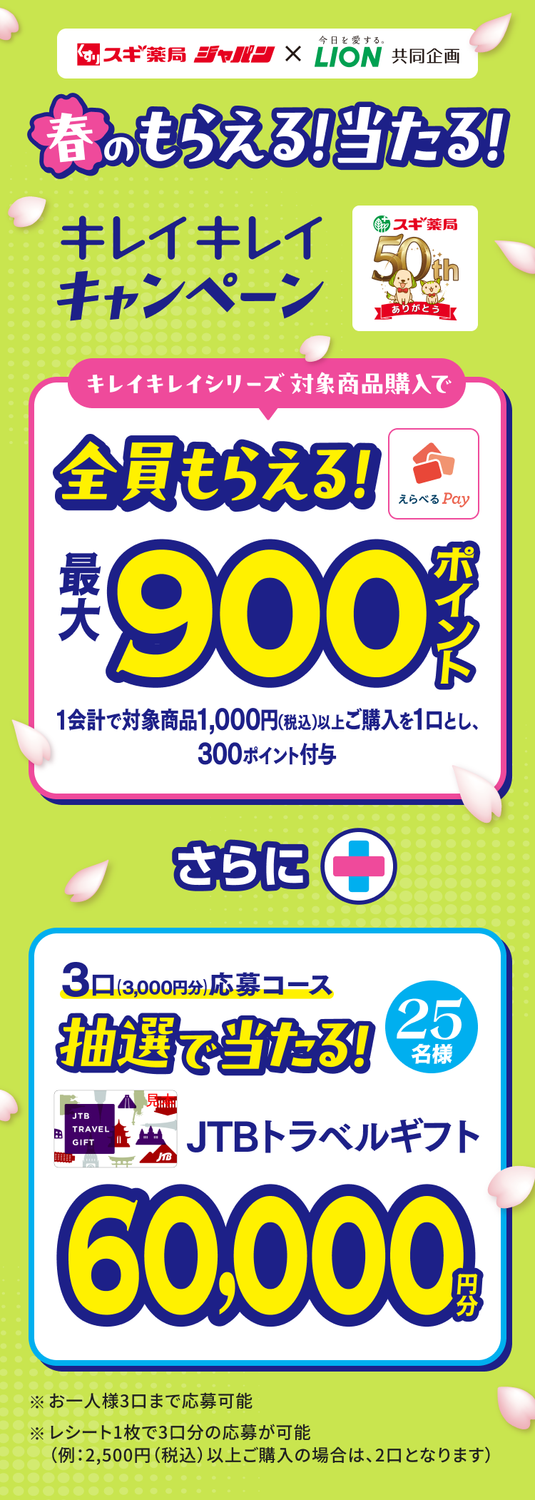 必ず【スギ薬局・ジャパン×ライオン共同企画 キレイキレイ春のもらえる!当たる!キャンペーン】のお問い合わせであることを明記してください。