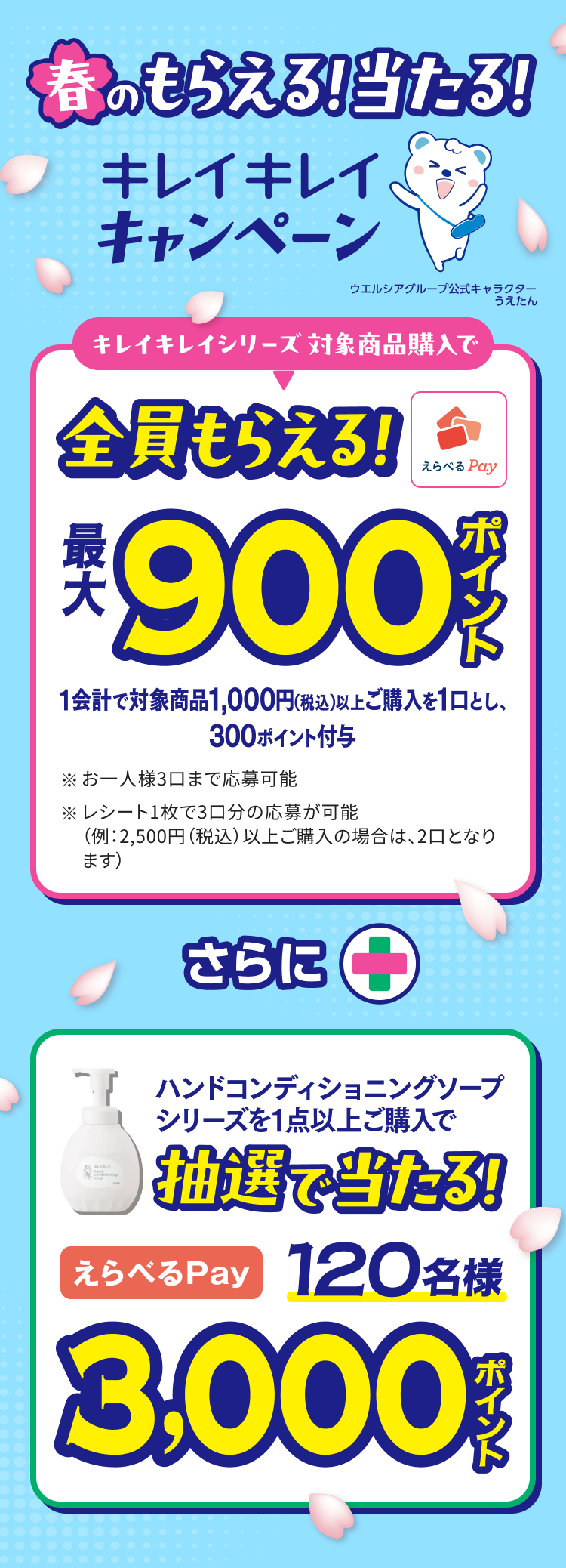必ず【ウエルシアグループ・ライオン共同企画 キレイキレイ春のもらえる!当たる!キャンペーン】のお問い合わせであることを明記してください。