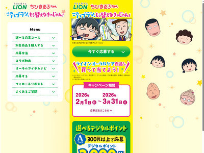 本キャンペーン期間中、いずれかのコースの応募に必要な対象商品を、合計300円(税込)以上または800円(税込)以上お買い上げのレシートを1口として、WEBでご応募いただくと、抽選で合計1,150名様に限定賞品が当たります。(以下「300円(税込)コース」「800円(税込)コース」といいます) さらに、ライオンハブラシ3本以上お買い上げいただいたレシートでご応募いただくと、当選チャンスが5倍となりま...
