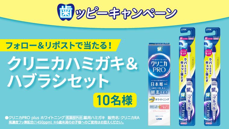対象のX公式アカウントをフォローして、キャンペーン投稿をリポストすると、抽選で10名様に「クリニカハミガキ&ハブラシセット」が当たる!