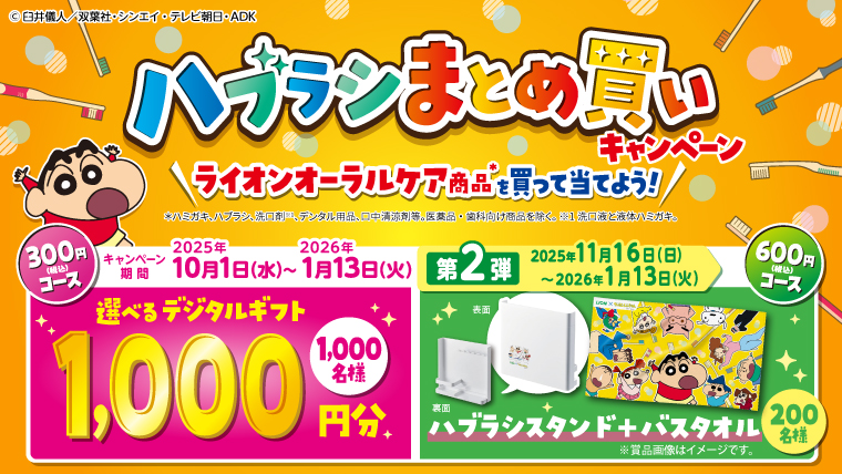 ライオン×クレヨンしんちゃん ハブラシまとめ買いキャンペーン(別ウィンドウで開く)