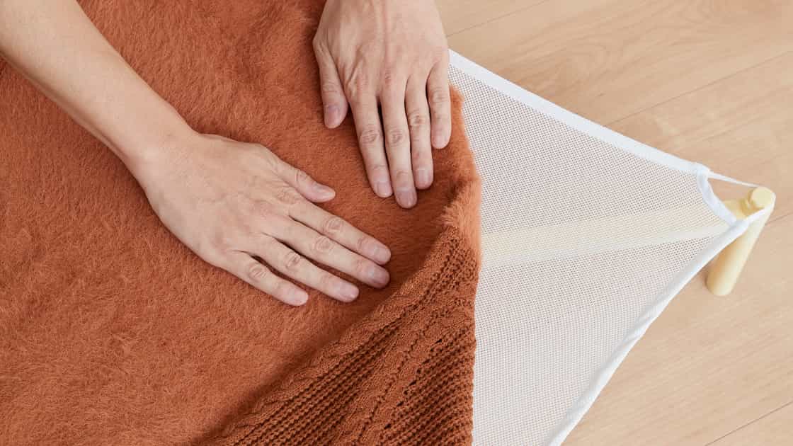 ニットの部分は、手でやさしくシワを伸ばしたり、編み目を整えたりしましょう。
