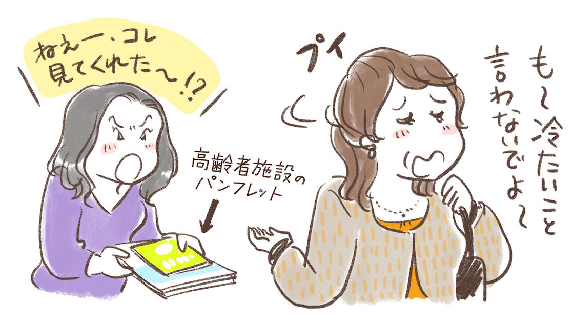 私は資産運用などに興味があるので、母にもいろいろ提案するのですが「すごいね〜っ」って感じであしらわれます。高齢者施設の話も「寂しいこと言うね〜」って言われておしまい。資料も取り寄せて渡したのに、目も通してないようで…。