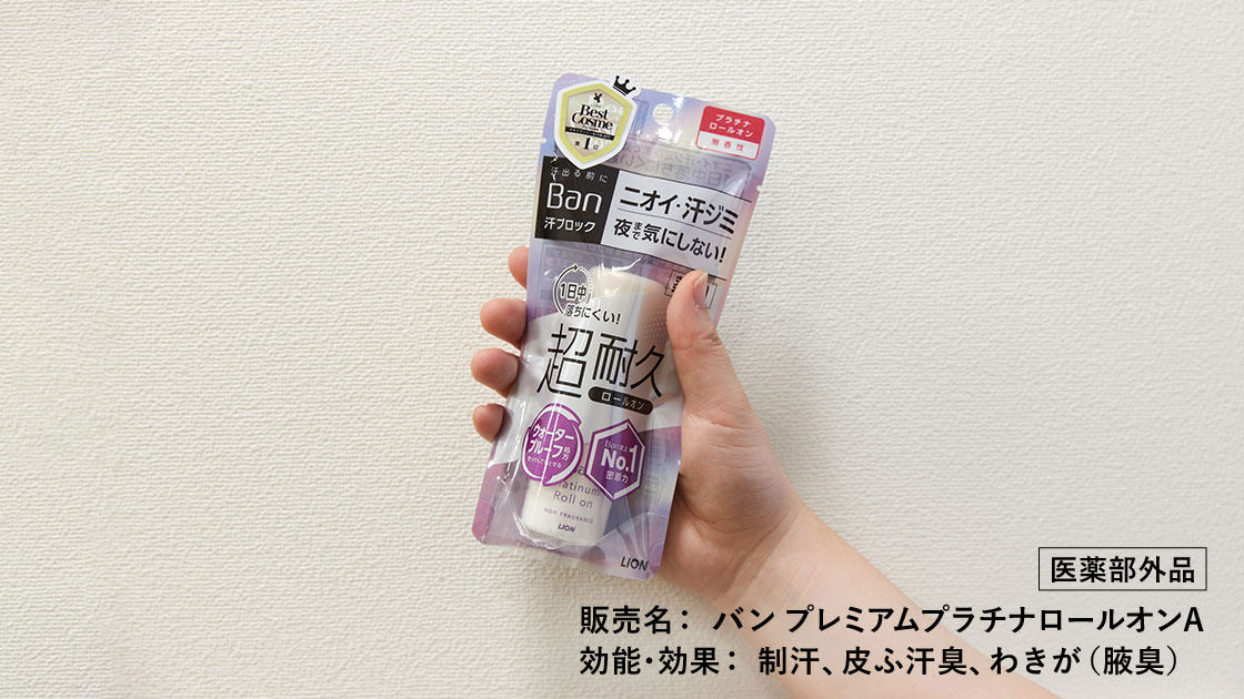 「Ban汗ブロック プラチナロールオン」は、毎朝、寝巻きから外出するときの服に着替える時に塗っているんですが、耐久力が強いのがうれしいところ。