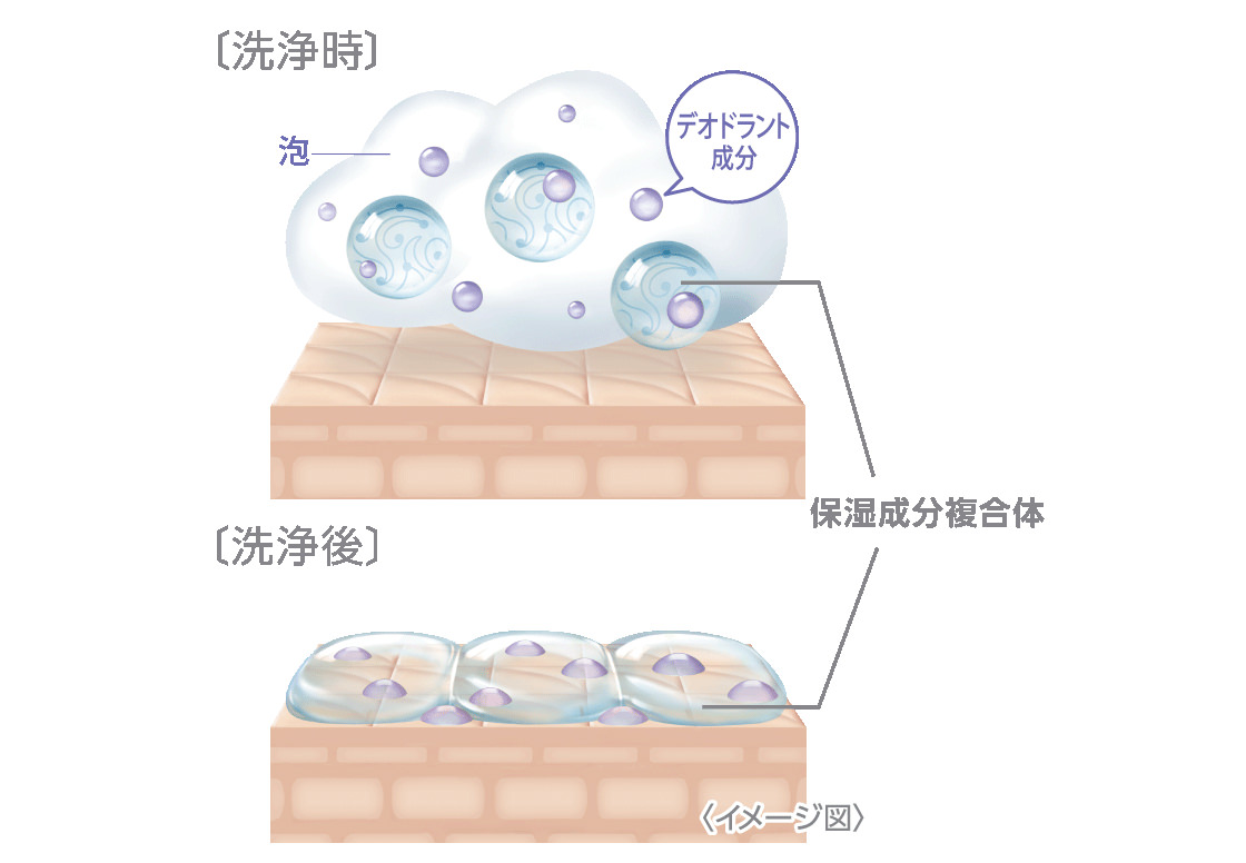 ――この商品は、ニオイを防いで保湿までできる、家族で使える「本格デオドラントタイプ」。さりげなく、でもちゃんと、家族と自分のニオイのケアができるボディソープなんです。