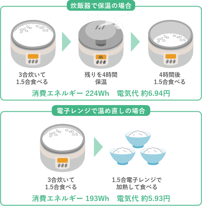 炊飯器や電気ポットの「保温」機能は便利ですよね。ただ、長時間保温すると、それだけ電気を使うことになります。場合によっては、保温はせずに、必要な時に温め直しする方が、電気代がかからないこともあるので、要注意です。