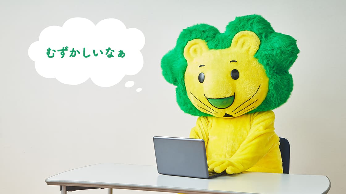 ある昼下がり。何やら勉強しているライオンちゃん。最近よく聞く「サステナブル」や「サステナビリティ」という言葉について調べているんだって!