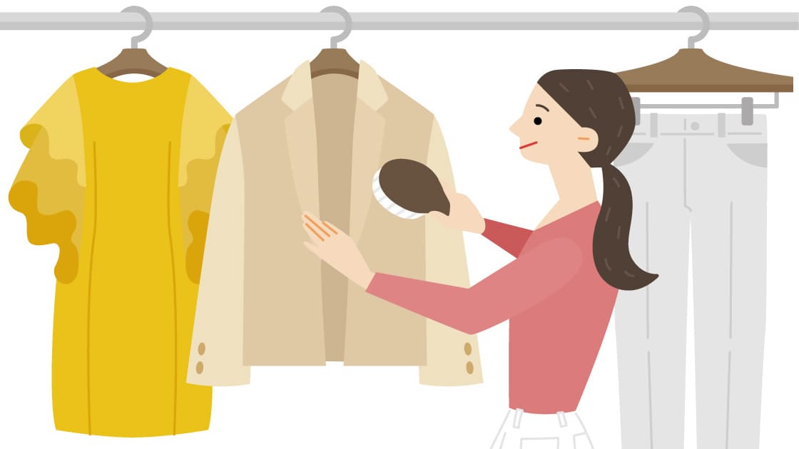 洋服を大事にしている女性のイラスト