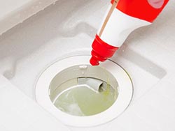 排水口は、髪の毛などのゴミを取り除き、塩素系のパイプクリーナー※を流し入れて、所定の時間(製品によって異なります)を置いて、十分に水で流します。使用時は換気を良くし手袋を着用してください。
