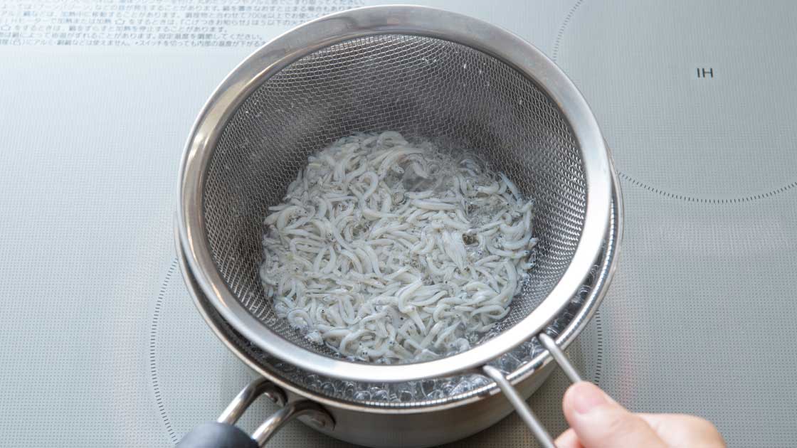 しらす干しは離乳食におすすめの小魚です。市販されている釜揚げしらすは、すでにゆでてあるものですが、塩分が多いので塩抜きします。熱湯で1分ほどゆでればOK。