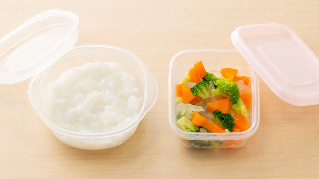 おかゆや野菜の食べる量が増えたら、冷凍・電子レンジOKのミニ保存容器も便利です。