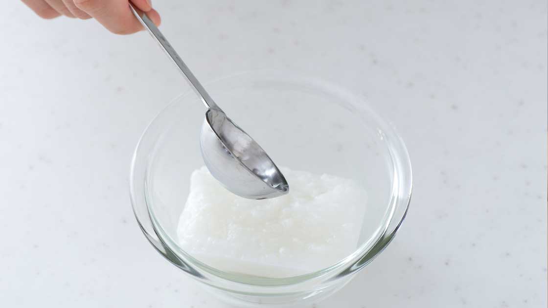 水分の多い液体状の食材は、氷用の製氷皿よりも離乳食用のフリージングトレーの方が取り出しやすくて便利。だしなどは、小さじ1(5g)、大さじ1(15g)など、1回分ずつ小分けにします。また、固まると取り出しにくいおかゆもフリージングトレーで小分けにします。