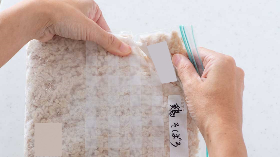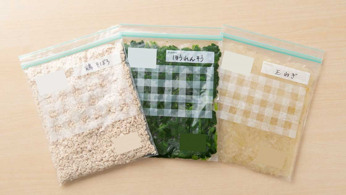 加熱調理した食材は、必ず冷ましてから冷凍します。容器の水滴はふき取り、保存バッグはなるべく空気を抜くことで、食材の劣化を防げます。