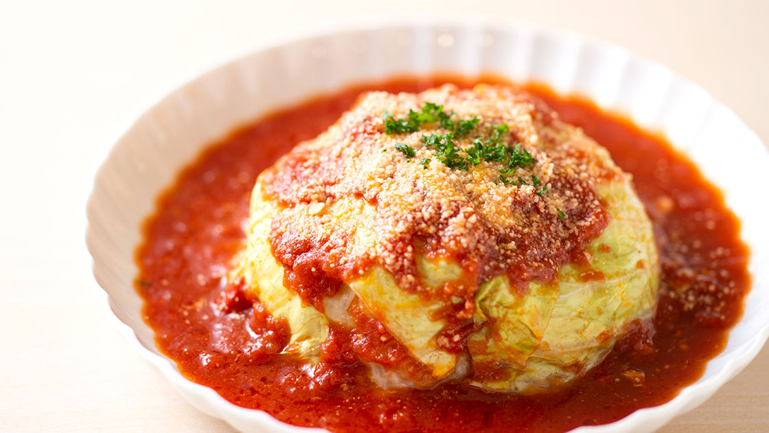 *キャベツの太い軸の部分はみじん切りにし、肉だねに混ぜてもおいしく食べられます。