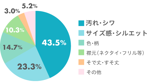 肘の内側、腰の上付近、ひざの裏側など、着用じわのついている部分を確認します。