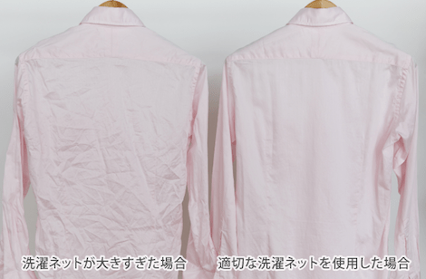 適切なサイズの洗濯ネットでワイシャツのしわが減少