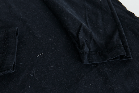 特に、こういった黒や濃紺のTシャツ類は、洗濯機の中で他の衣類の繊維が付着しやすいので要注意です。